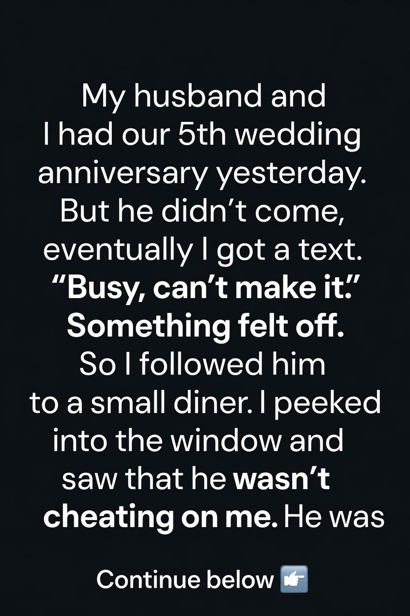 Something about his message felt off and unsettled me deeply. The next day, my curiosity and concern got the better of me, so I decided to follow him. I saw him enter a small, quiet diner and my heart pounded as I peeked through the window.