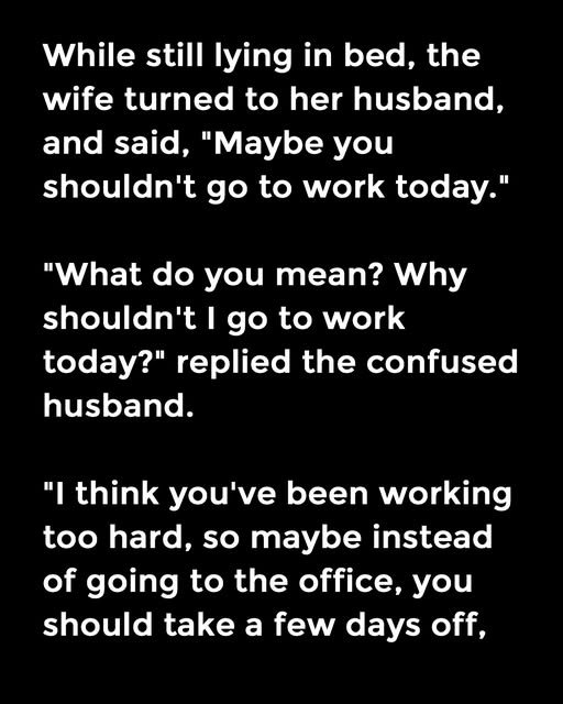 While still lying in bed, the wife turned to her husband, and said, “Maybe you shouldn’t go to work today.”