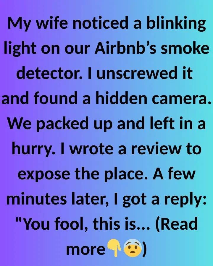 My wife noticed a blinking light on our Airbnb’s smoke detector. I unscrewed it and found a hidden camera. We packed up and left in a hurry.